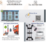 | สเปคการวัด | Camber: ช่วง ±15°00’ | ความแม่นยำ ±00°02’ Caster: ช่วง ±28°00’ | ความแม่นยำ ±00°05’ Kingpin Inclination (KPI/SAI): ช่วง ±25°00’ | ความแม่นยำ ±00°05’ Toe (ต่อเพลา): ช่วง ±20°00’ | ความแม่นยำ ±00°02’ Total Toe: ช่วง ±40°00’ | ความแม่นยำ ±00°04’ Toe-Out on Turns: ช่วง ±20°00’ | ความแม่นยำ ±00°02’ Setback: ช่วง ±25 มม. | ความแม่นยำ ±2 มม. Thrust Angle: ช่วง ±05°00’ | ความแม่นยำ ±00°02’ Runout Compensation: ช่วง ±10°00’ | ความแม่นยำ ±00°02’ Track Width Difference: สูงสุด ±300 มม. | ความแม่นยำ ±5 มม. |